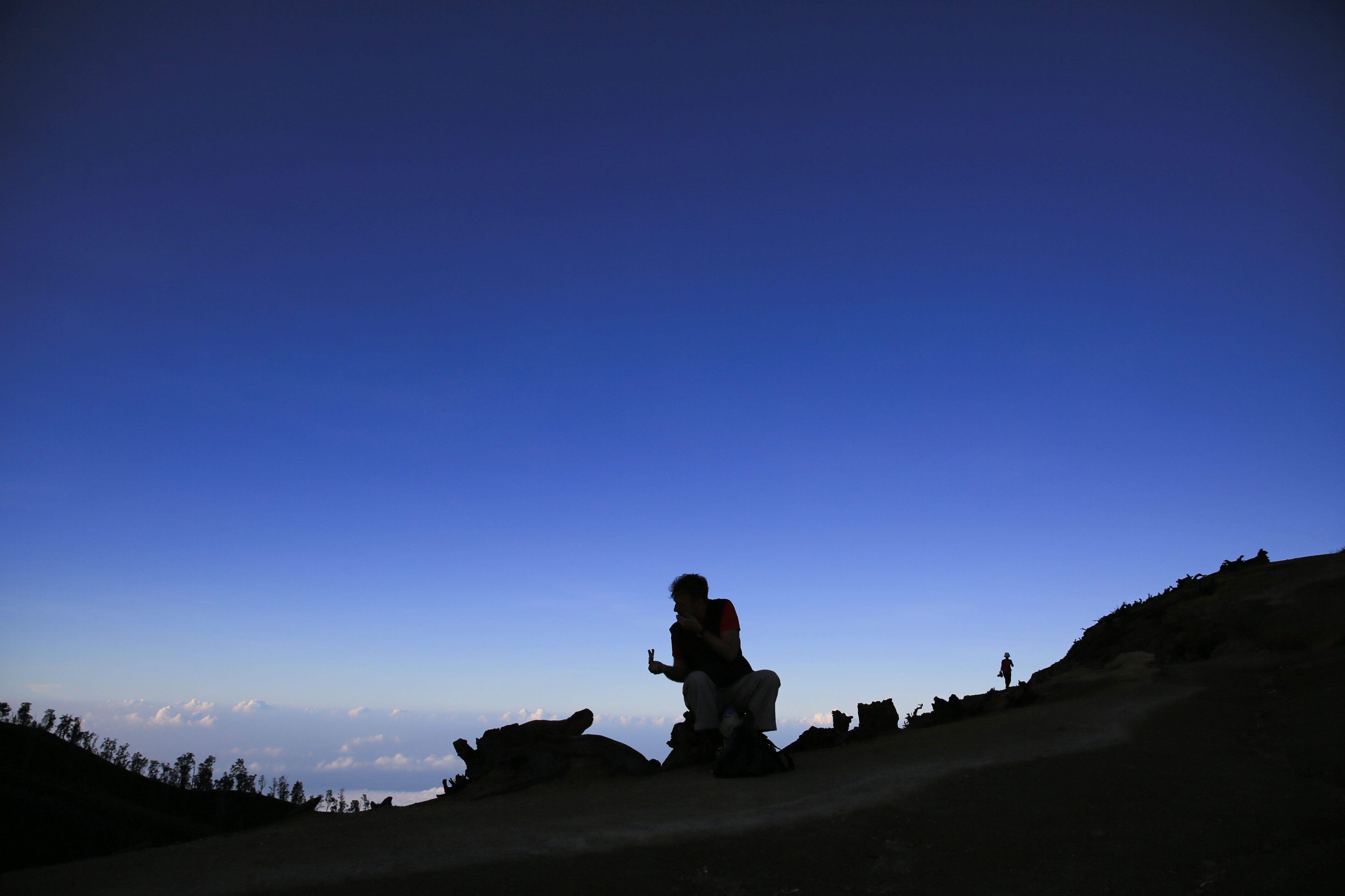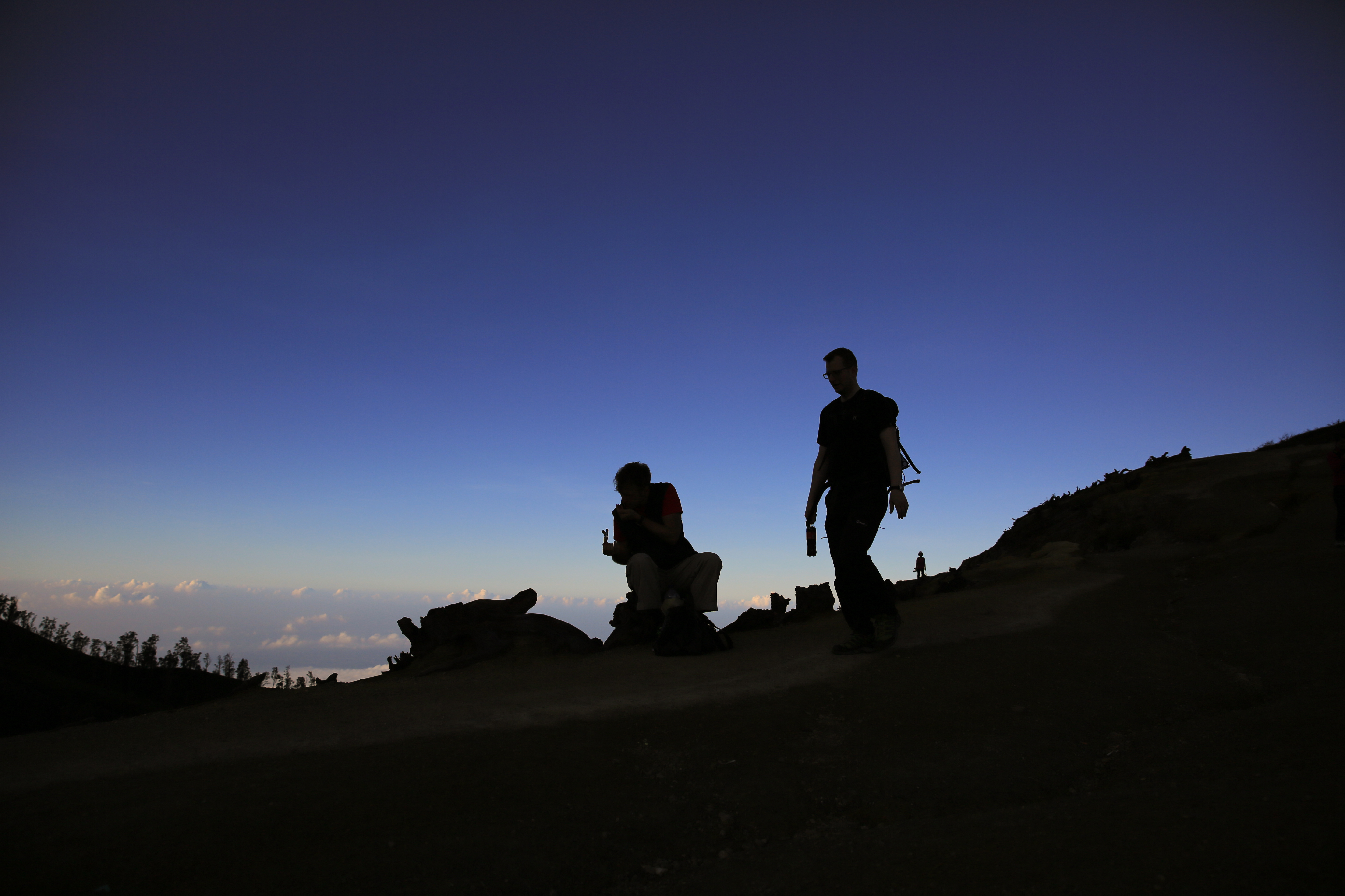 캄캄한 산길을 3~4 시간정도 오르면 정상에 도착하고 유황가스 냄새가 날리고 호흡이 조금씩 힘들어 진다