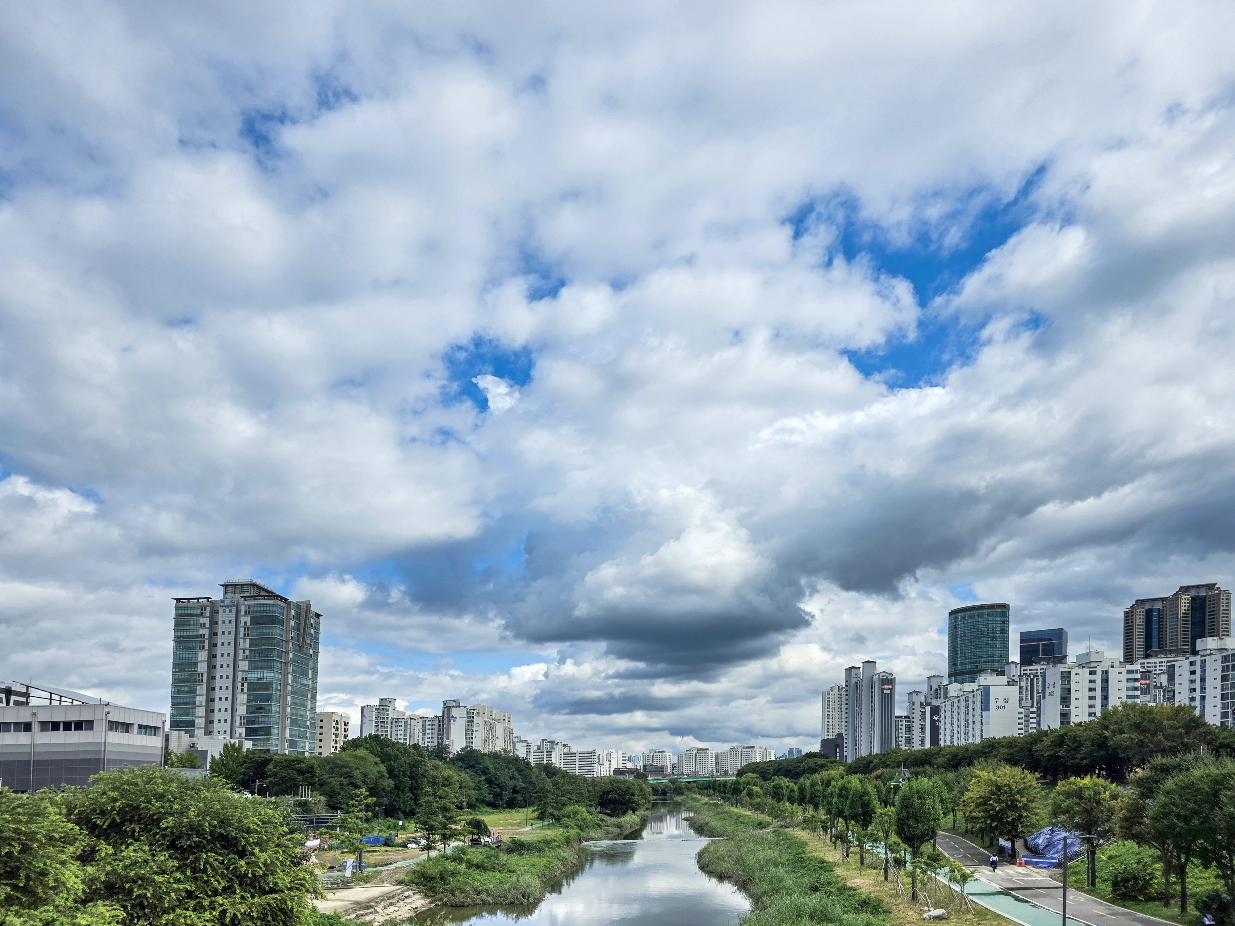 장마가 멈추니 가을 하늘이 흰구름 가득 싣고 펼쳐 집니다